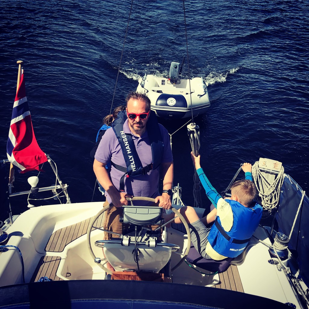 Generelt om turen: Vår første tur alene gikk for motor og handlet om å bli litt mer kjent med båten. Vi hadde ikke lyst å reise hjem uten å ha prøvd den og dette ble en veldig koselig solskinnstur hvor alle fire fikk prøve roret. På vei inn igjen rodde Henry jolla slik at tilleggingen ved brygga skulle gjennomføres uten at Titanic var i veien. Selve tilleggingen gikk ikke så bra og det gikk hardt ut over flagget. Mer om den historien er å lese i Torstein sin logg i forbindelse med seilkurs.