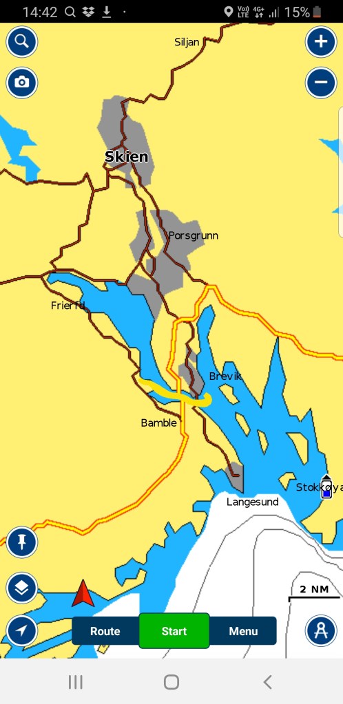 Turområde: Sildeberget, ut Frierfjorden rundt til Eidangerfjorden og Brevik og tilbake til Sildeberget.